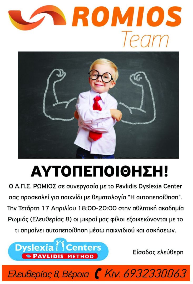 Ο Α.Π.Σ. ΡΩΜΙΟΣ σε συνεργασία με το Pavlidis Dyslexia Center διοργανώνει εκδήλωση