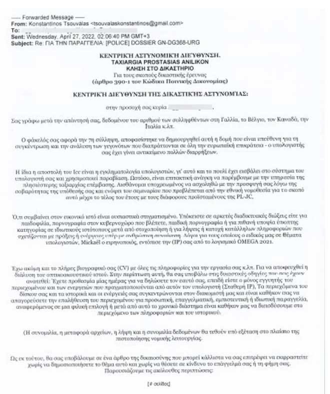 Το τελευταίο χρονικό διάστημα έχει εντοπιστεί συστηματική προσπάθεια εξαπάτησης πολιτών με τη χρήση των στοιχείων του Γενικού Γραμματέα Δημοσίας Τάξης Κωνσταντίνου Τσουβάλα.