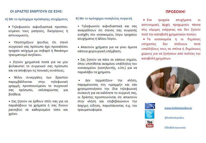 διάφορα προσχήματα και τεχνάσματα αποσπούν – κυρίως από ηλικιωμένους – χρηματικά