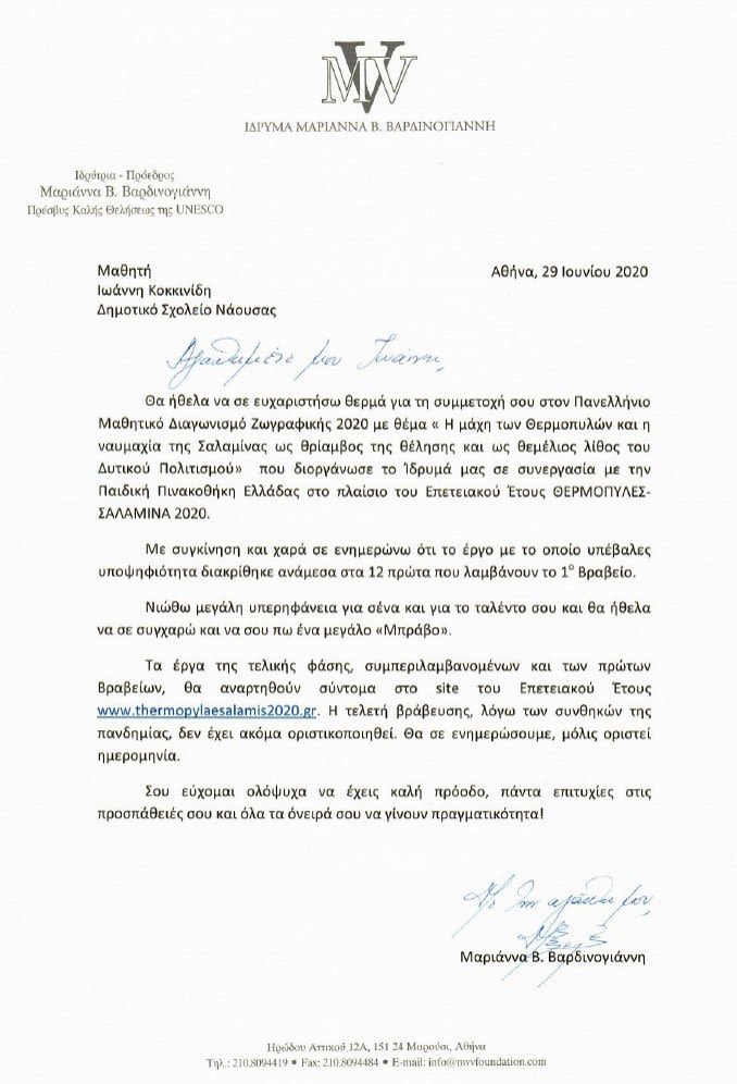 διαγωνισμός διοργανώθηκε από το Ίδρυμα «Μαριάννα Β. Βαρδινογιάννη» σε