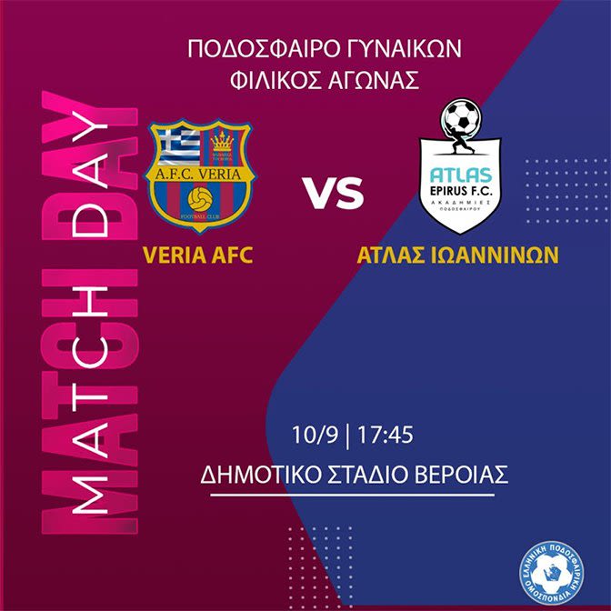 Αντίπαλος θα είναι η αξιόμαχη ομάδα του Άτλαντα Ιωαννίνων, με την αναμέτρηση να διεξάγεται στο Δημοτικό Στάδιο Βέροιας και να ξεκινάει στις 17:45.