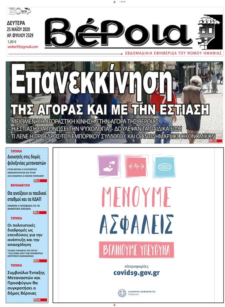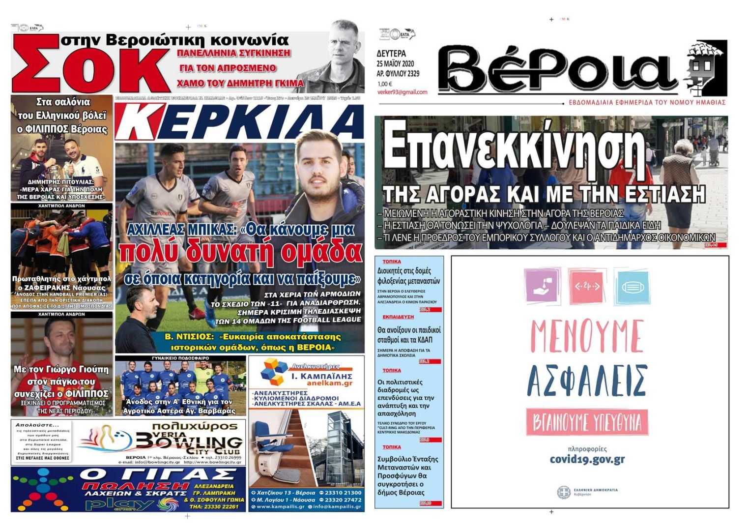 Πρωτοσέλιδα εφημερίδων ΒΕΡΟΙΑ και ΚΕΡΚΙΔΑ