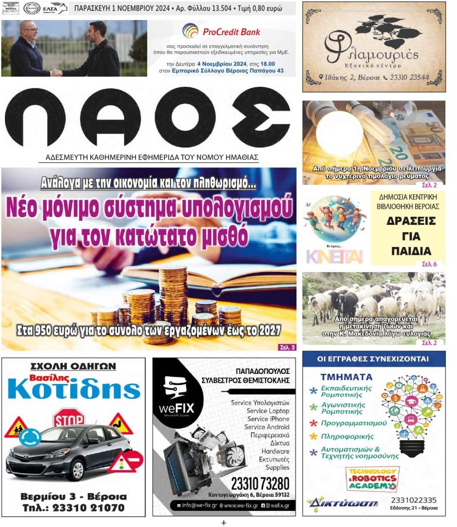 Πρωτοσέλιδο 1/11/2024