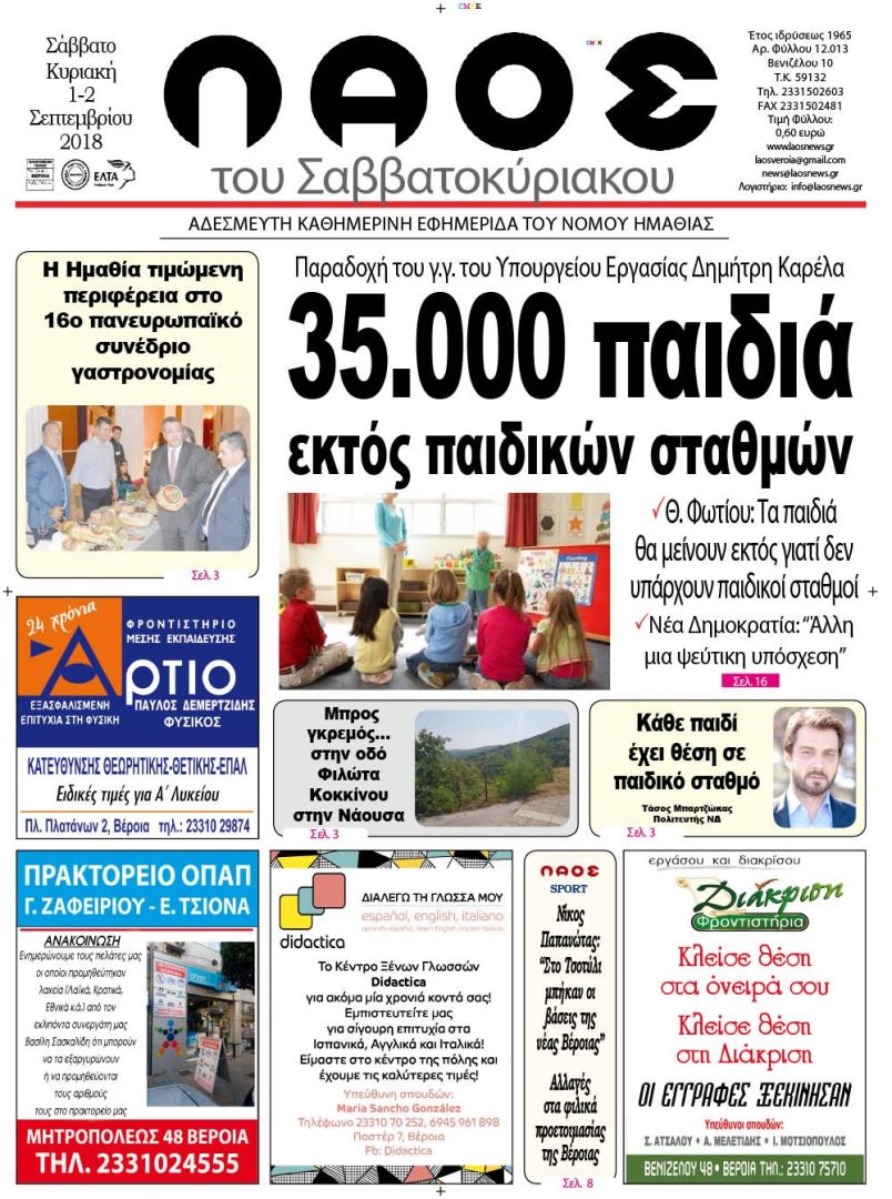 Παραδοχή του γ.γ. του Υπουργείου Εργασίας Δημήτρη Καρέλα35.000 παιδιά εκτός παιδικών σταθμών
