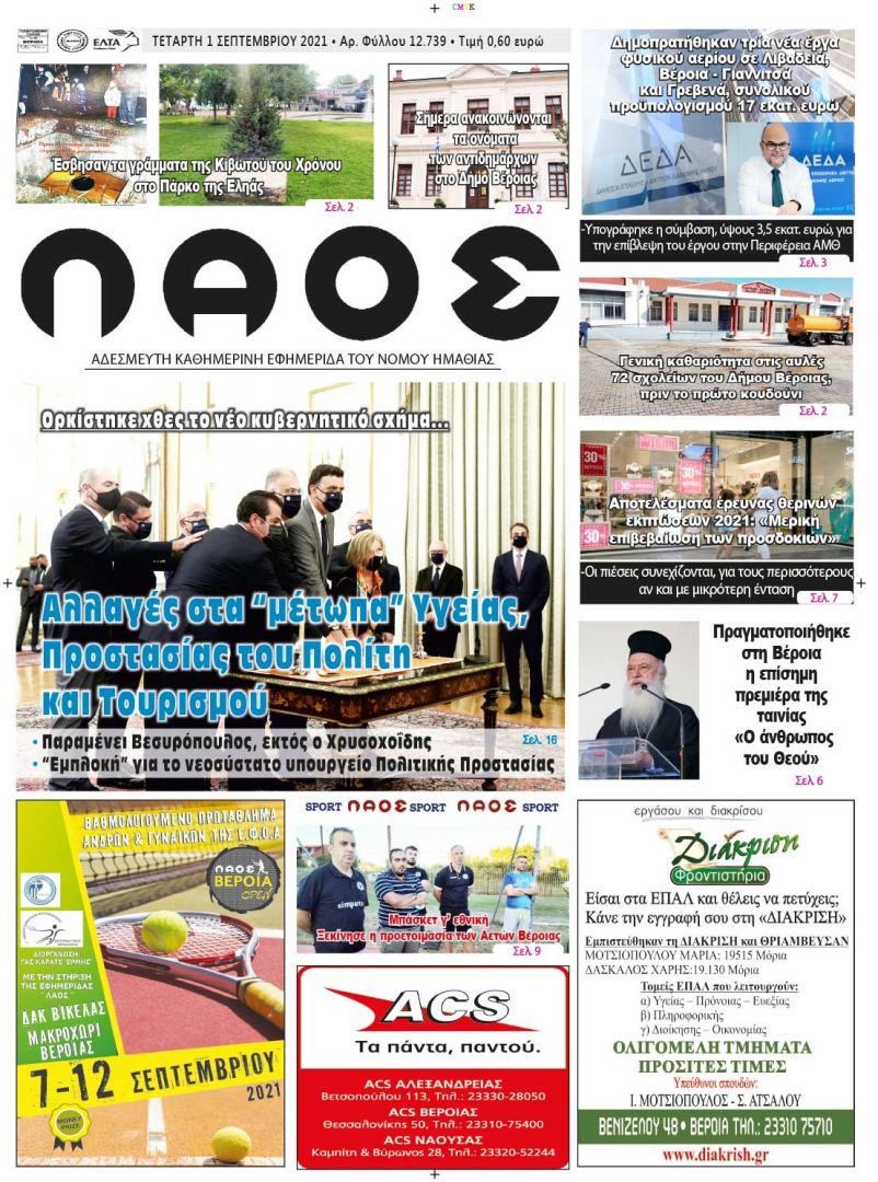 Πρωτοσέλιδο 1/9/2021