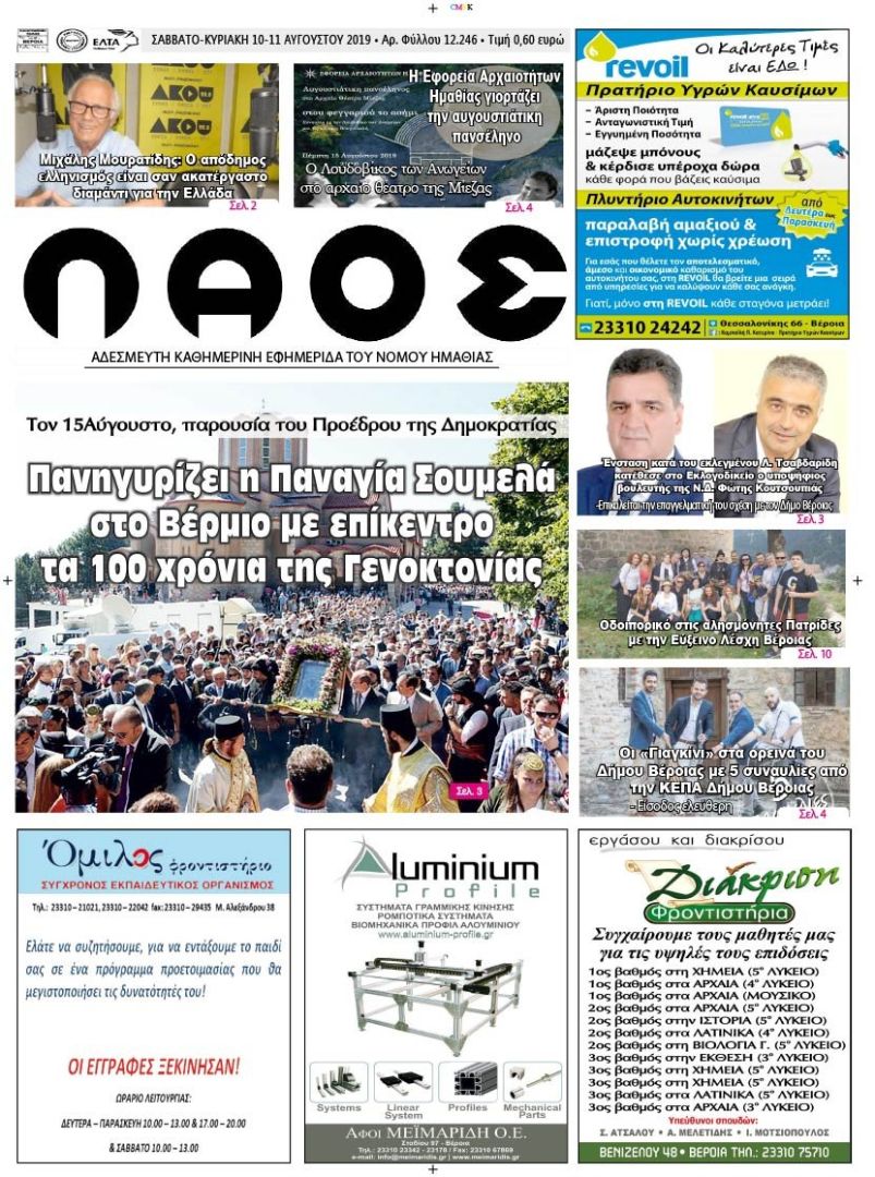 Πρωτοσέλιδο 10-11 ΑΥΓ. 2019