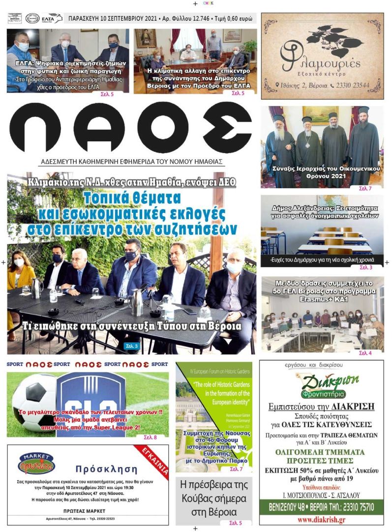 Πρωτοσέλιδο εφημερίδας “ΛΑΟΣ”