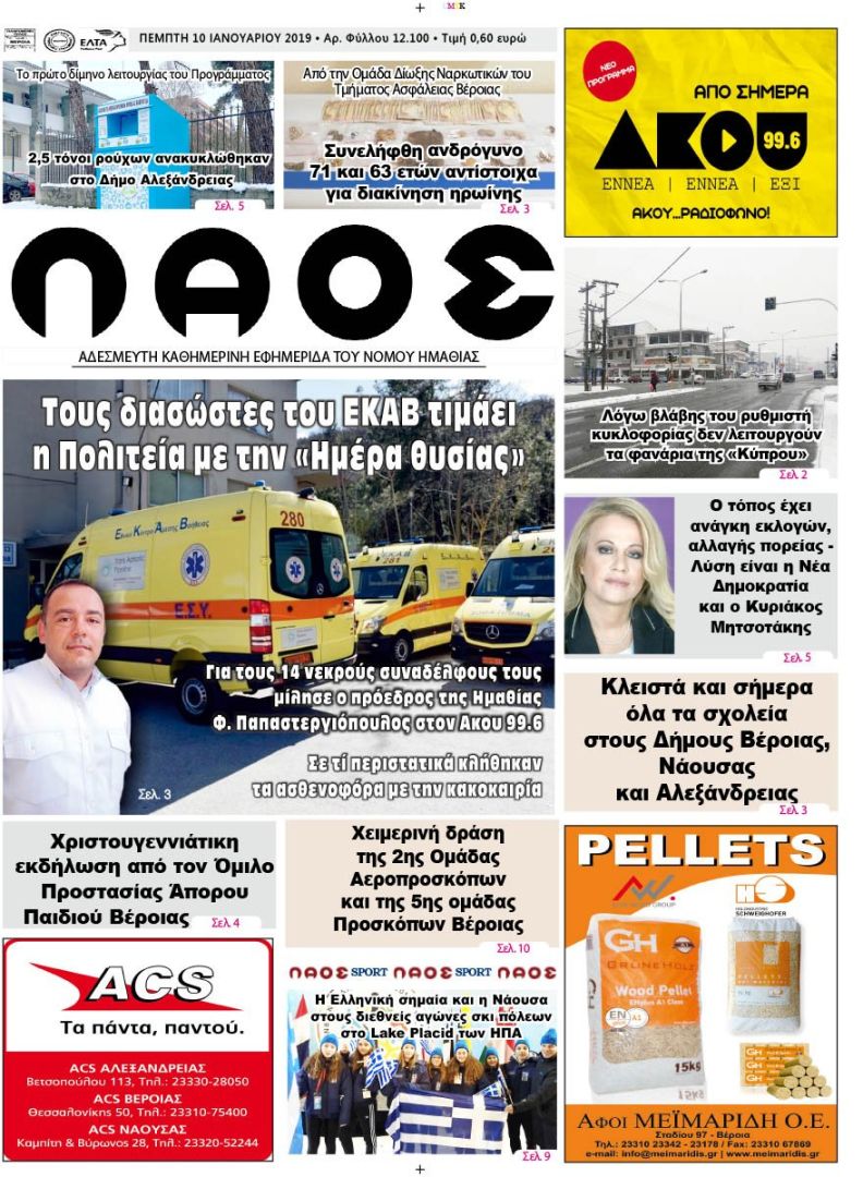 Πρωτοσέλιδο 10 Ιαν. 2019
