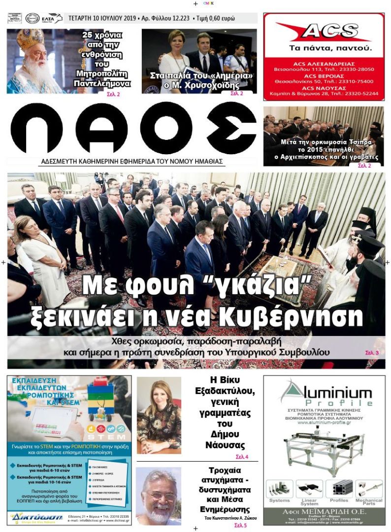 Πρωτοσέλιδο 10 ΙΟΥΛ. 2019