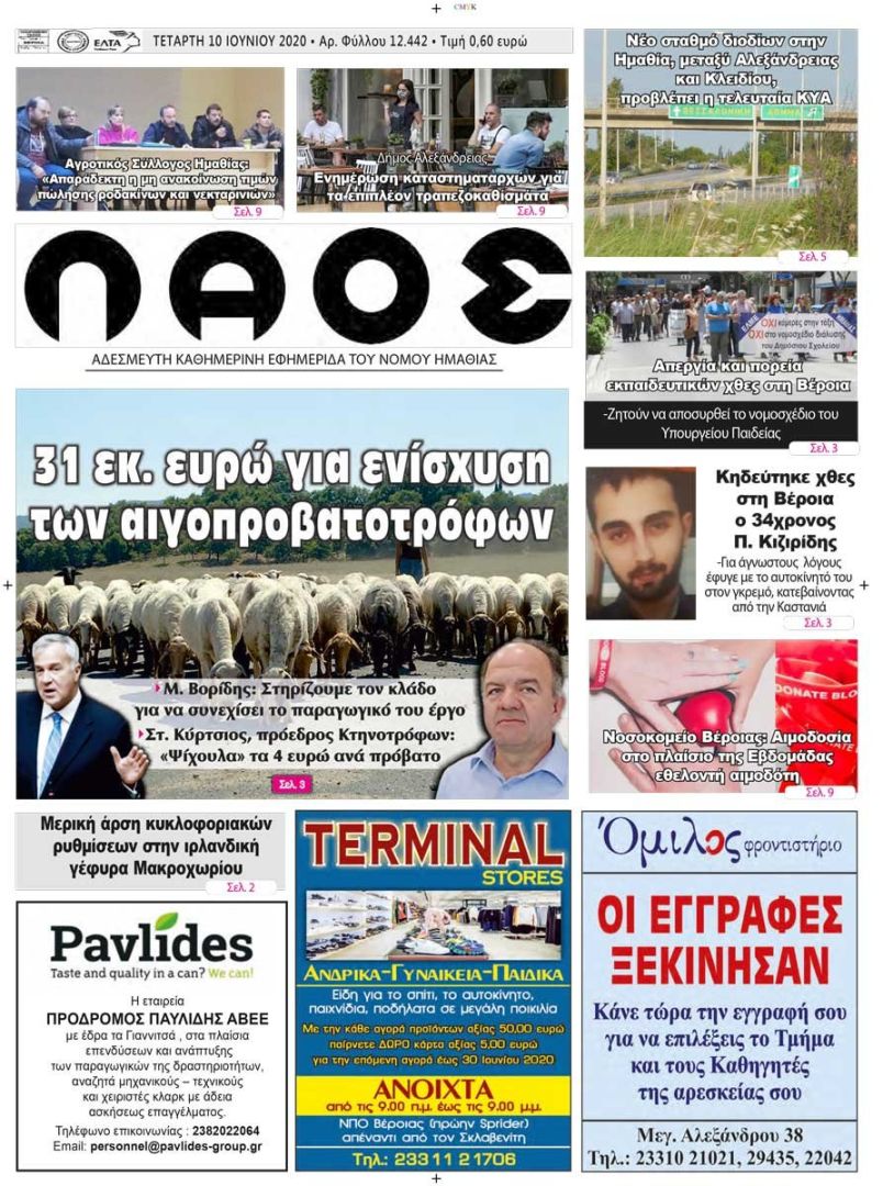 Πρωτοσέλιδο 10 ΙΟΥΝ. 2020