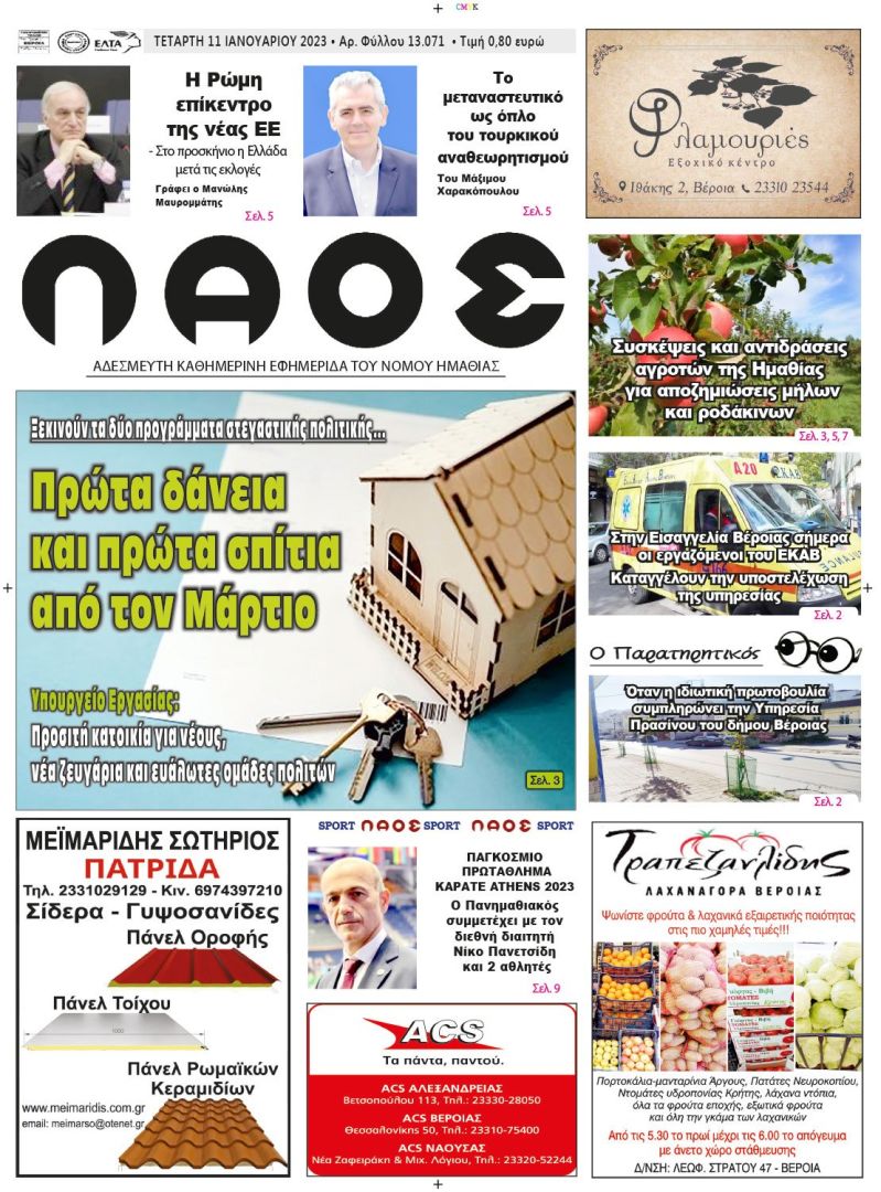 Πρωτοσέλιδο 11/1/2023