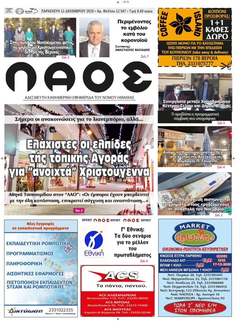 Άναψε το Χριστουγεννιάτικο δέντρο στο κέντρο της Αλεξάνδρειας ο Δήμαρχος Π. Γκυρίνης