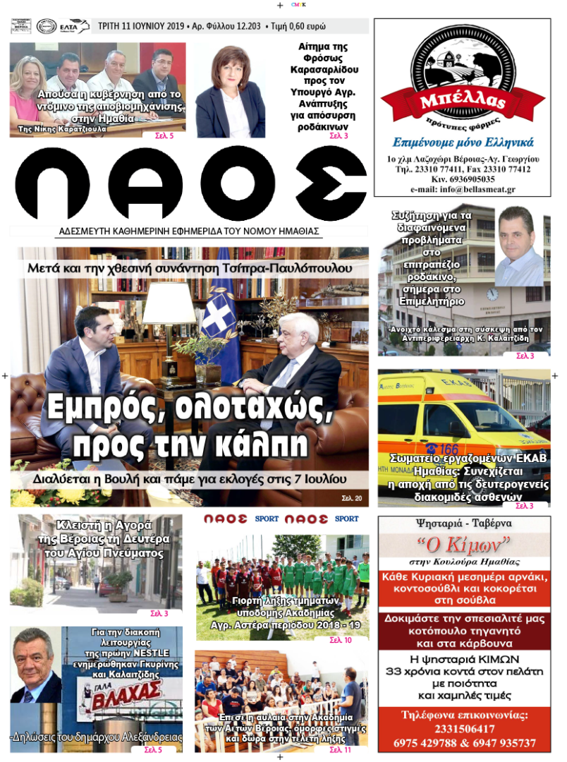 Πρωτοσέλιδο 11 ΙΟΥΝ. 2019