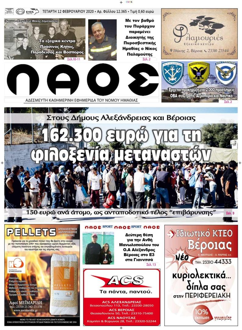 Πρωτοσέλιδο 12 ΦΕΒ 2020