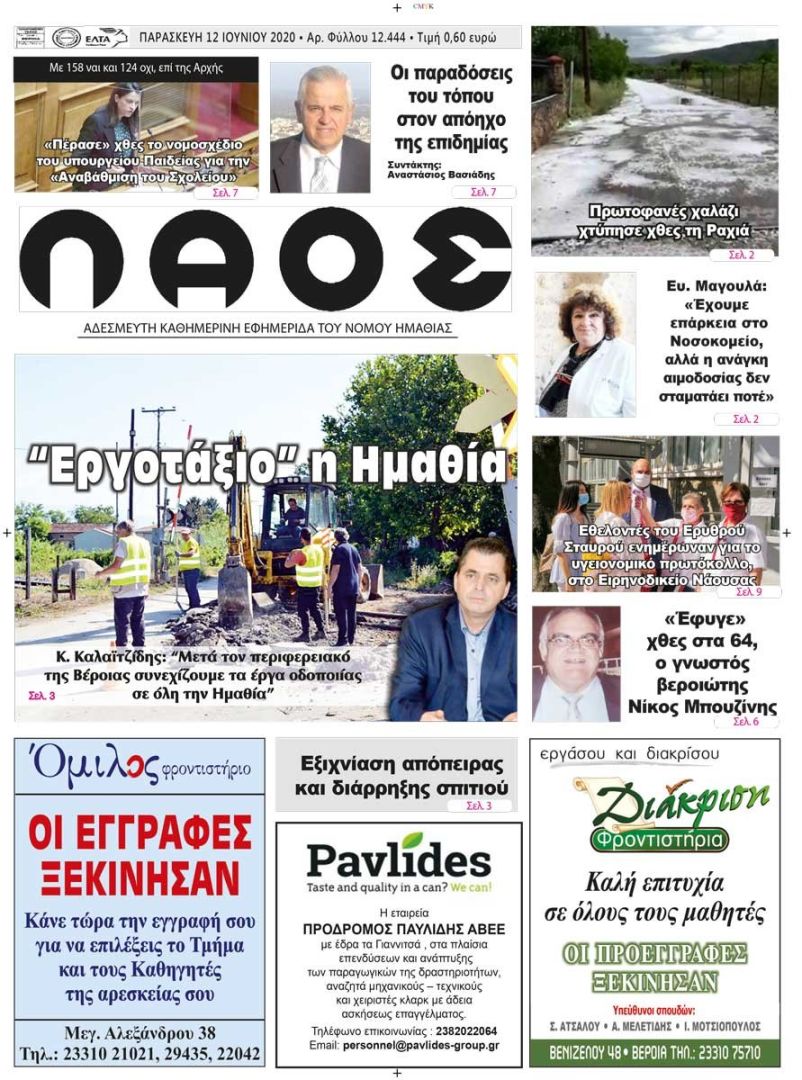 Πρωτοσέλιδο 12 ΙΟΥΝ. 2020