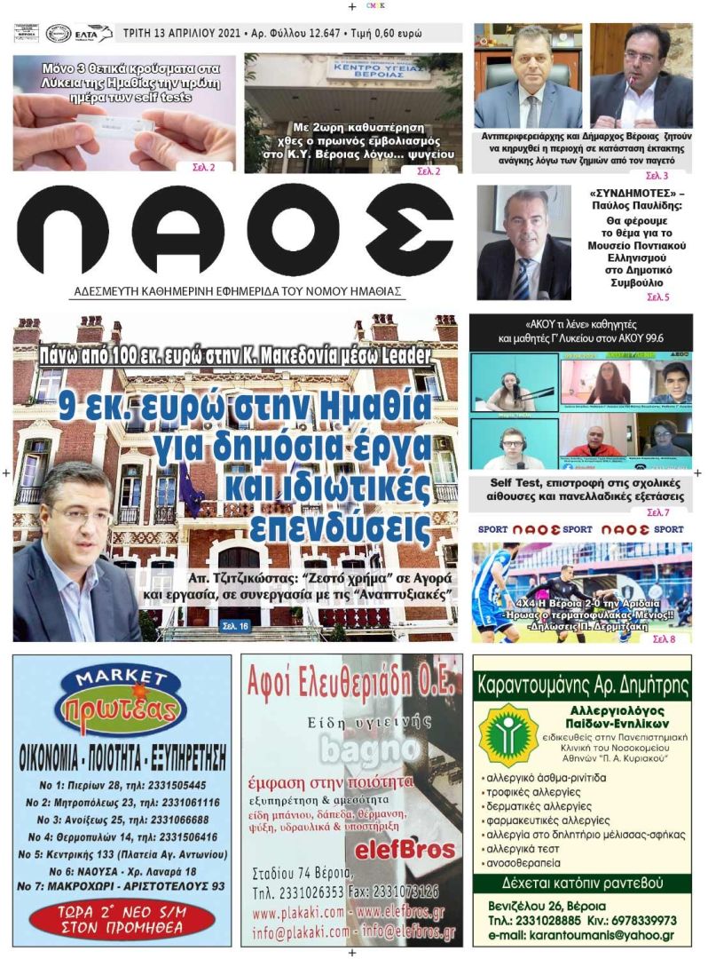 Πρωτοσέλιδο 13/4/2021