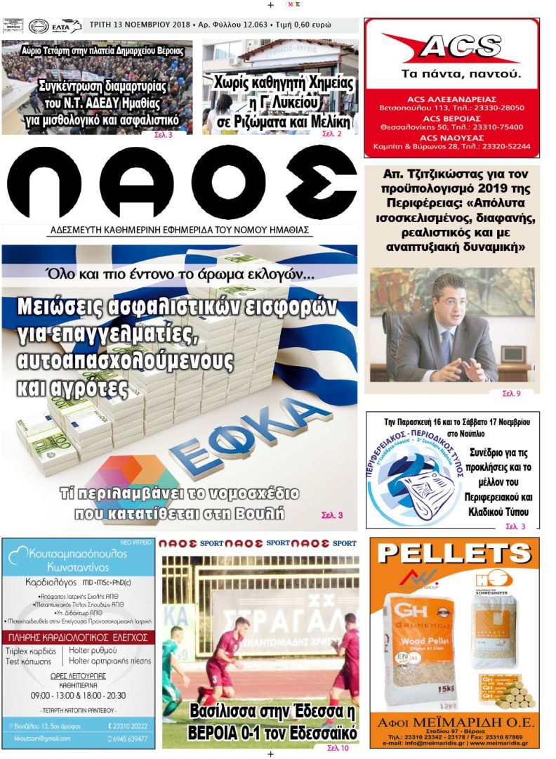 Πρωτοσέλιδο 13 Νοε. 2018