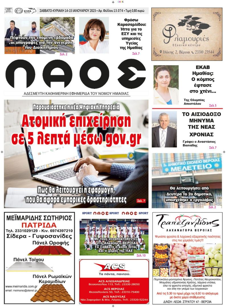 Πρωτοσέλιδο 14/1/2023