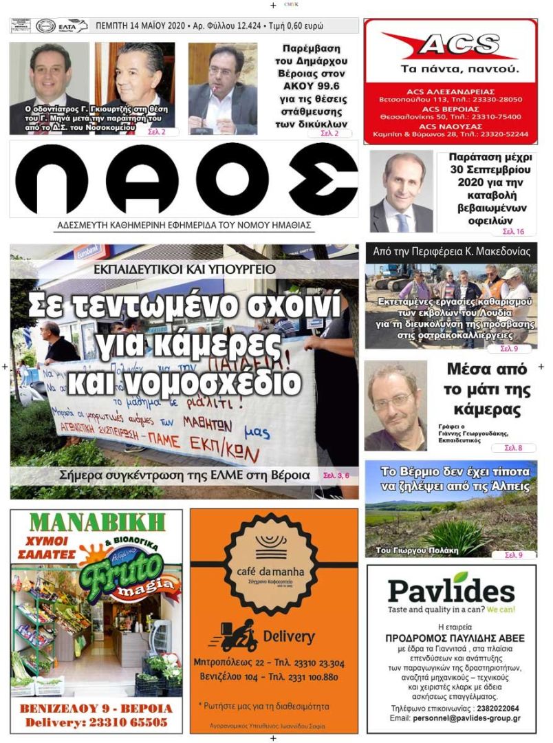 Πρωτοσέλιδο 14 Μαΐου