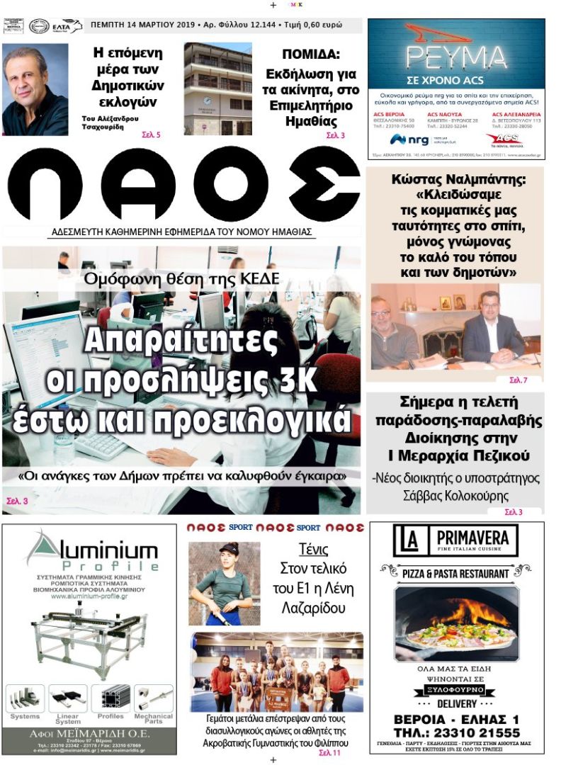 Πρωτοσέλιδο 14 ΜΑΡ. 2019