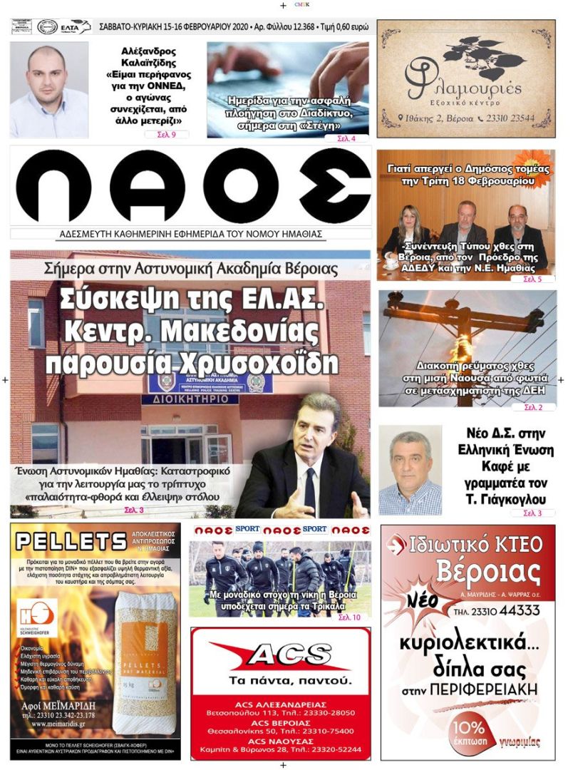 Πρωτοσέλιδο 15-16 ΦΕΒ. 2020