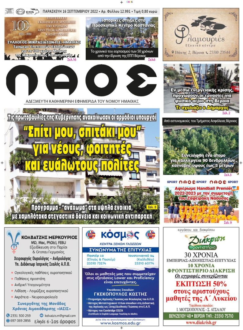Πρωτοσέλιδο 16/9/2022