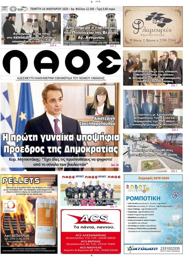 Πρωτοσέλιδο 16 ΙΑΝ. 2020