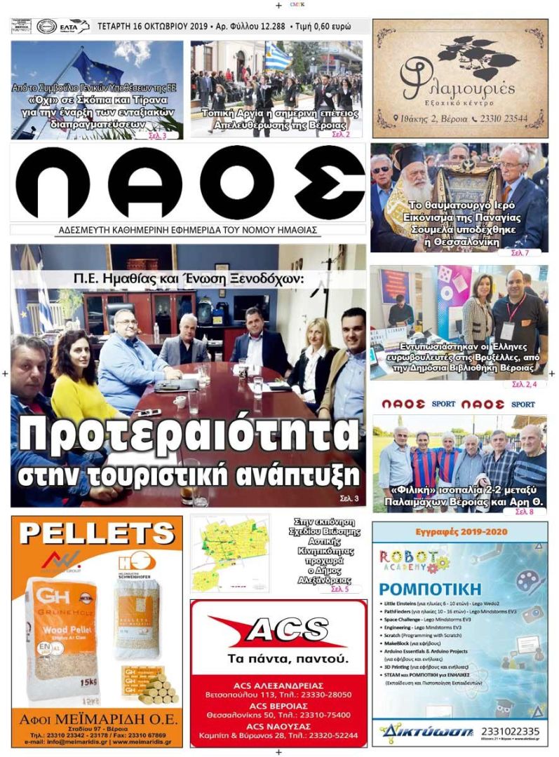 Πρωτοσέλιδο 16 ΟΚΤ. 2019