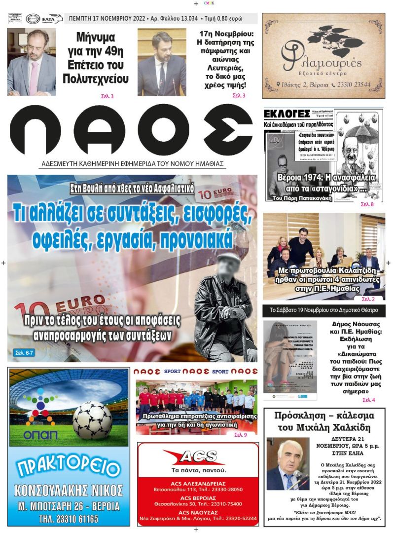 Πρωτοσέλιδο 17/11/2022