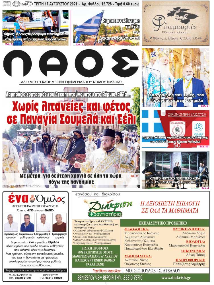 Πρωτοσέλιδο 17/8/2021
