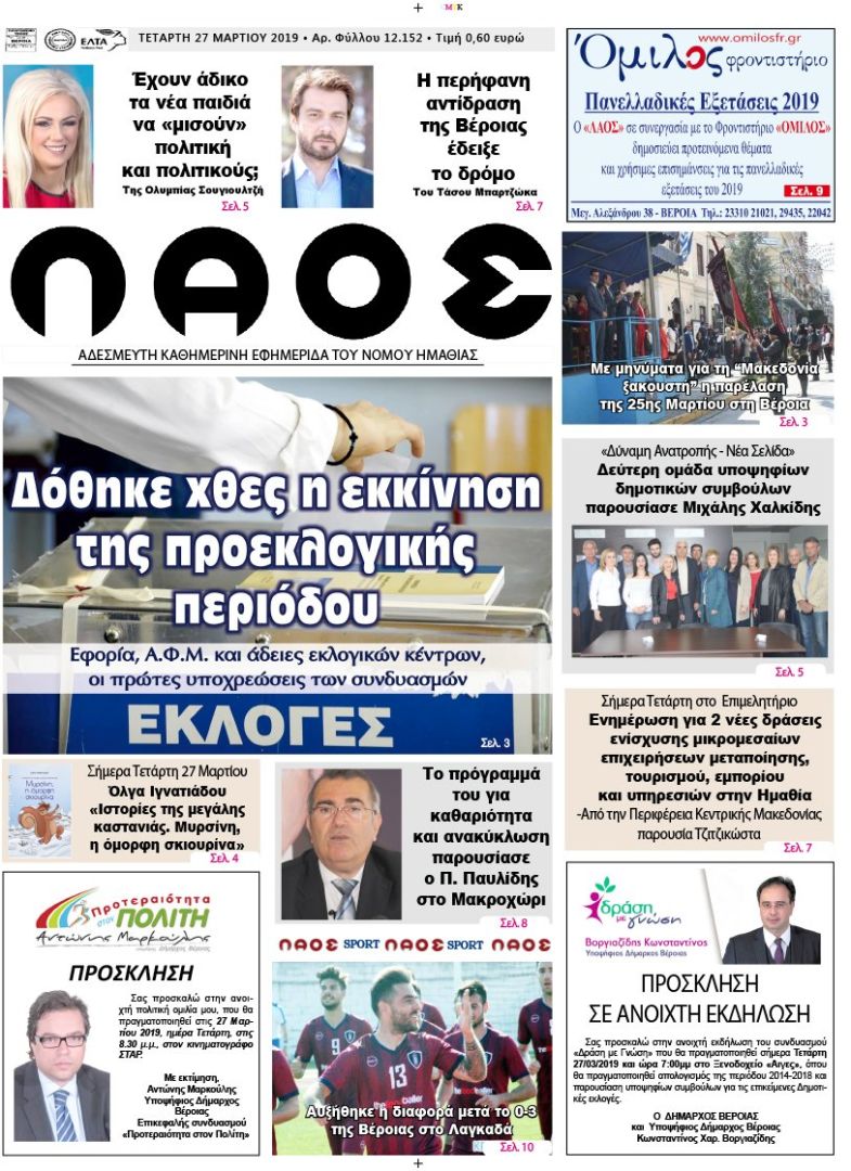 Πρωτοσέλιδο 17 ΜΑΡ. 2019