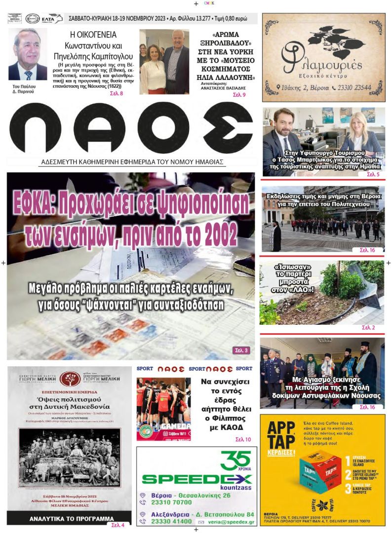 Πρωτοσέλιδο 18/11/2023