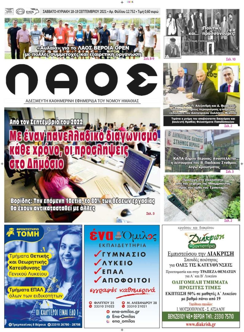 Πρωτοσέλιδο 18-19/09/2021