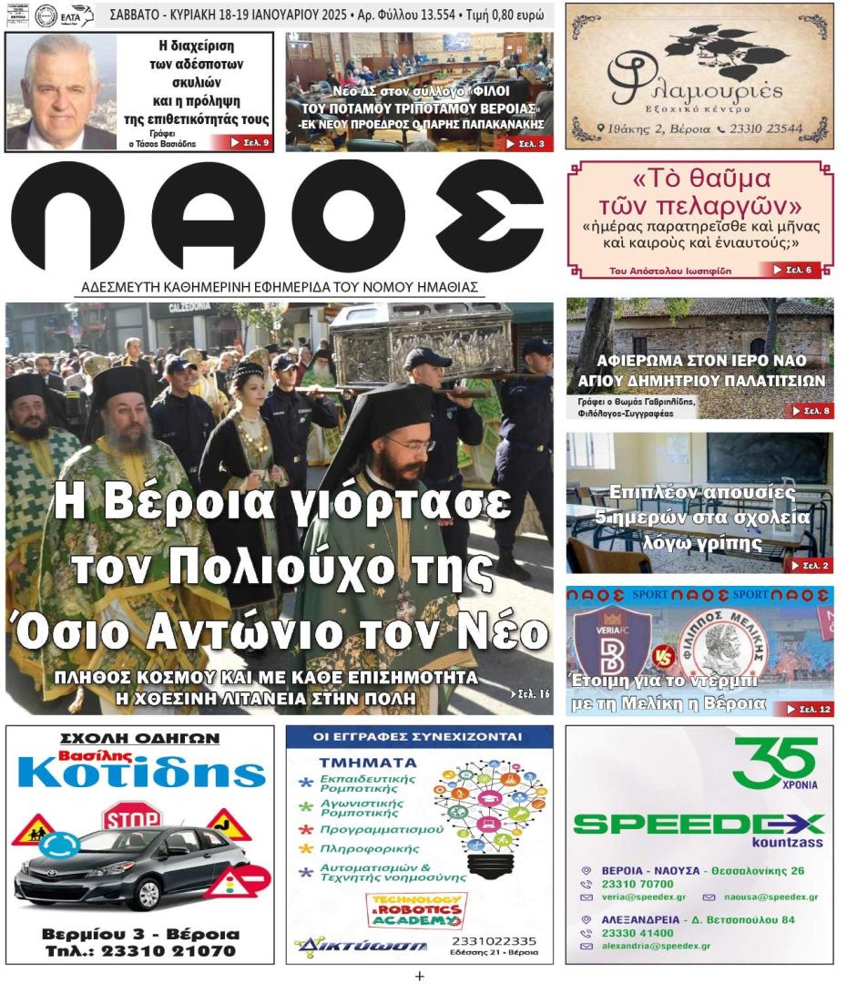 Πρωτοσέλιδο 18-19/1/2025