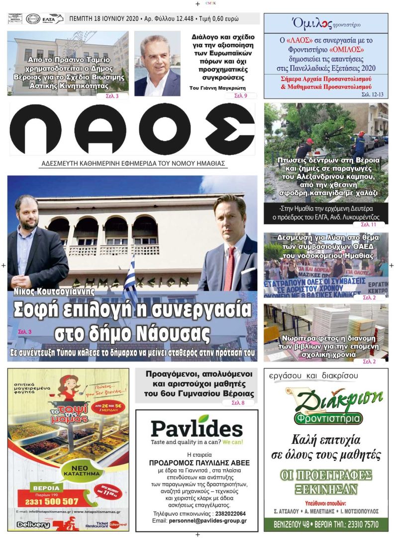 Πρωτοσέλιδο 18 ΙΟΥΝ. 2020