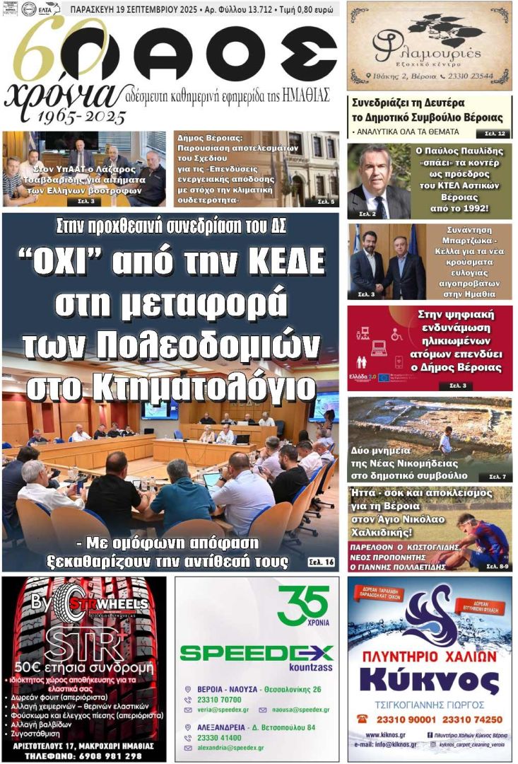 Πρωτοσέλιδο 19/9/2025