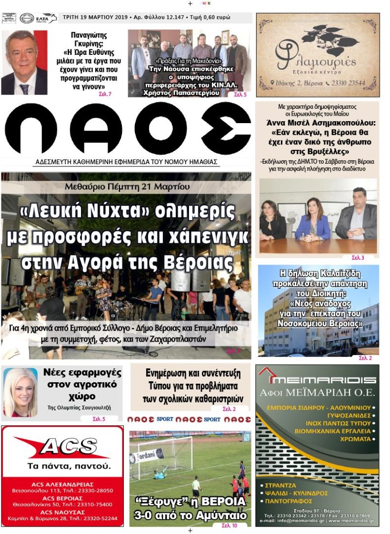 Πρωτοσέλιδο 19 ΜΑΡ. 2019