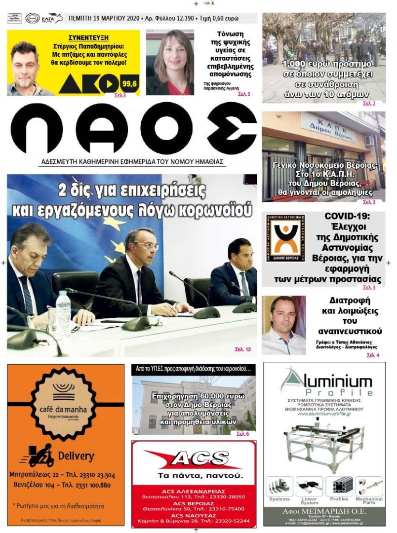 Πρωτοσέλιδο 19 ΜΑΡ. 2020