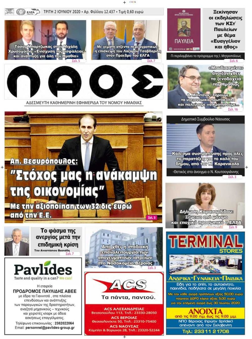 Πρωτοσέλιδο 2 ΙΟΥΛ. 2020