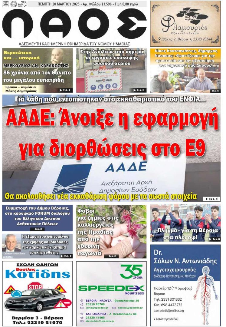 Πρωτοσέλιδο 20/3/2025