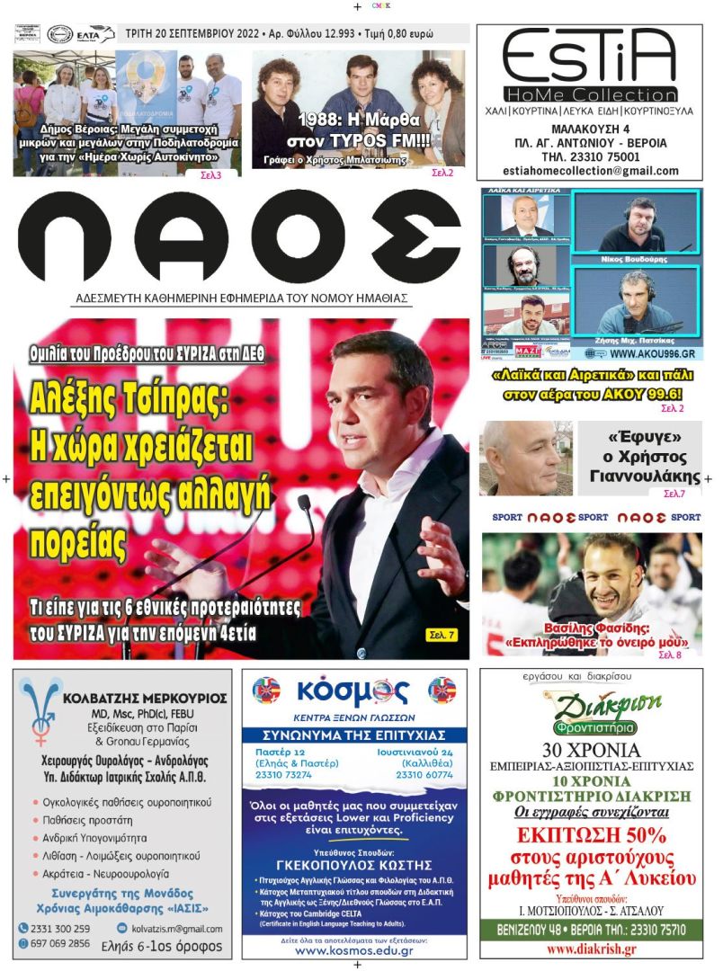Πρωτοσέλιδο 20/9/2022