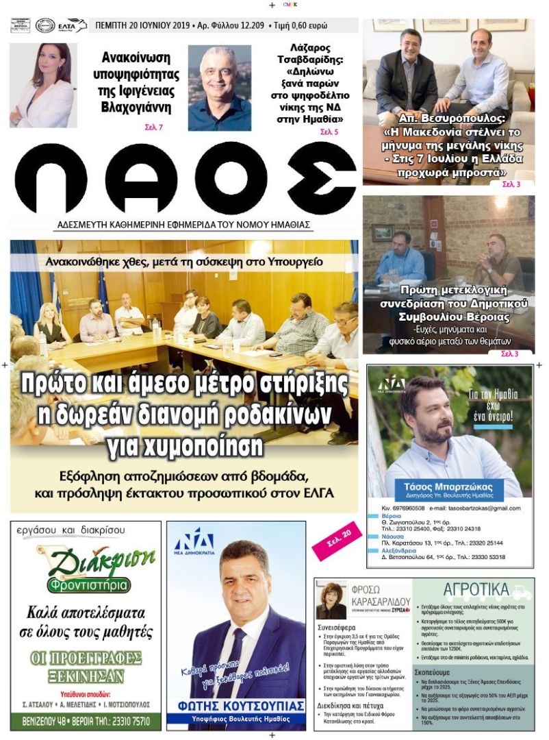 Λάζαρος Τσαβδαρίδης: «Δηλώνωξανά παρών στο ψηφοδέλτιο νίκης της ΝΔ στην Ημαθία»
