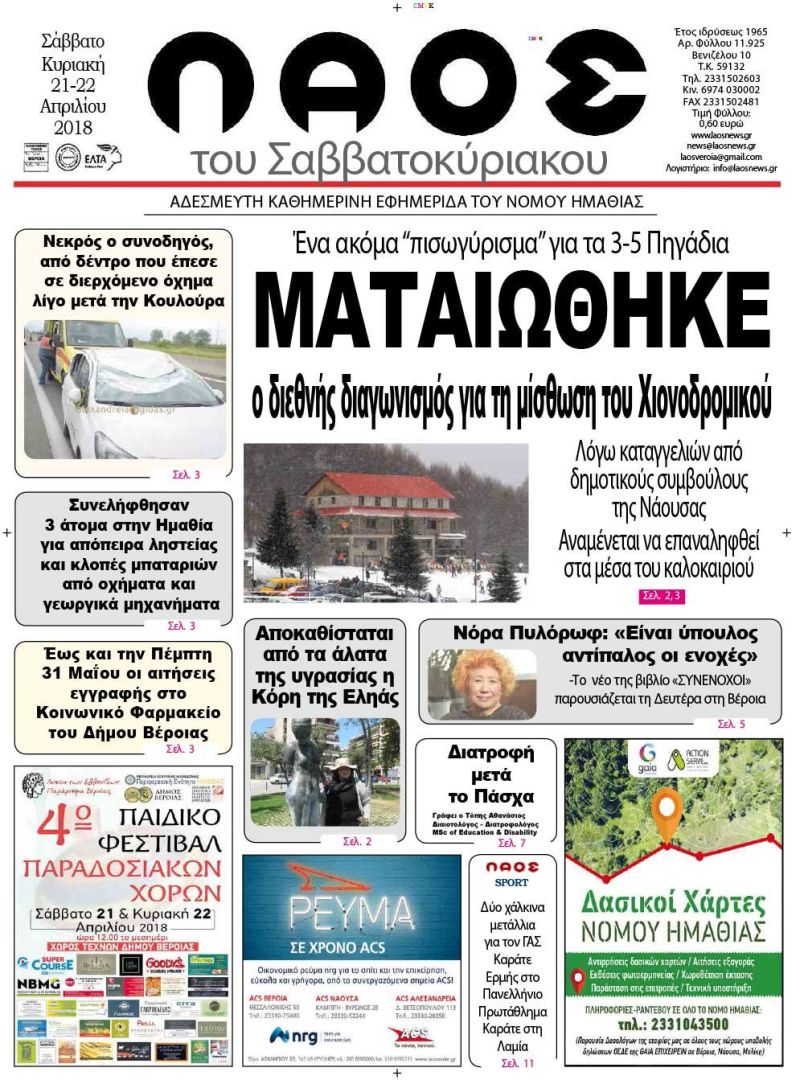 Πρωτοσέλιδο 21-22 Απρ.-2018