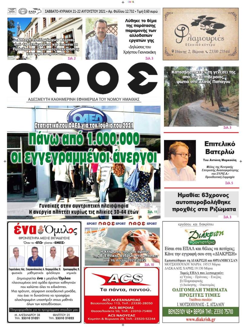 Πρωτοσέλιδο 21/8/2021