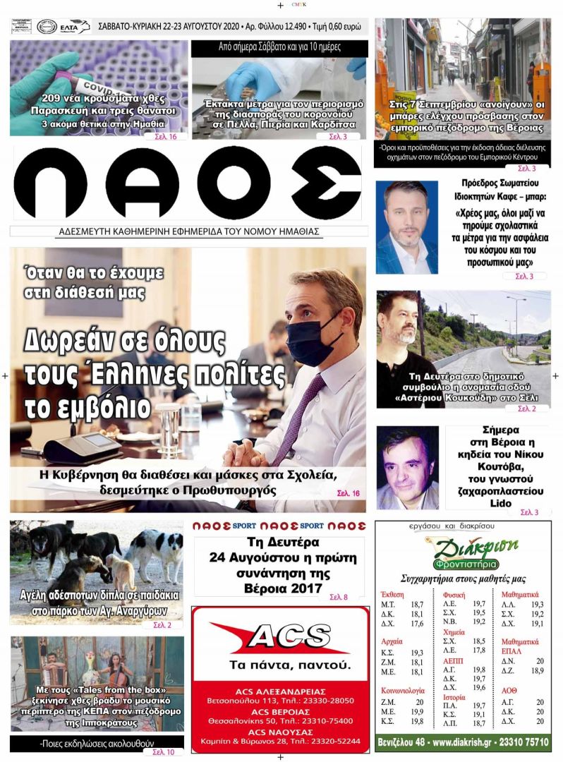 Πρωτοσέλιδο 22/08/2020