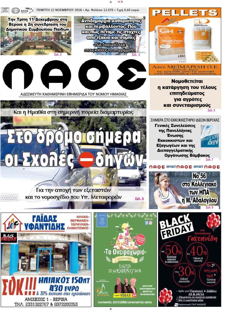 ΣΗΜΕΡΑ ΣΤΟ ΕΚΚΟΚΚΙΣΤΗΡΙΟ ΙΔΕΩΝ ΒΕΡΟΙΑΣ