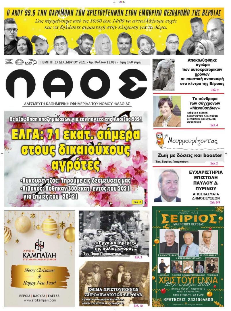Πρωτοσέλιδο 23/12/2021