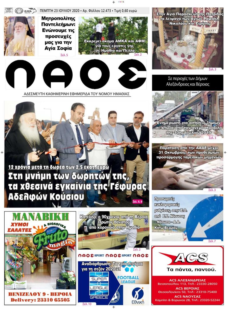 Στη μνήμη των δωρητών της, τα χθεσινά εγκαίνια της Γέφυρας Αδελφών Κούσιου