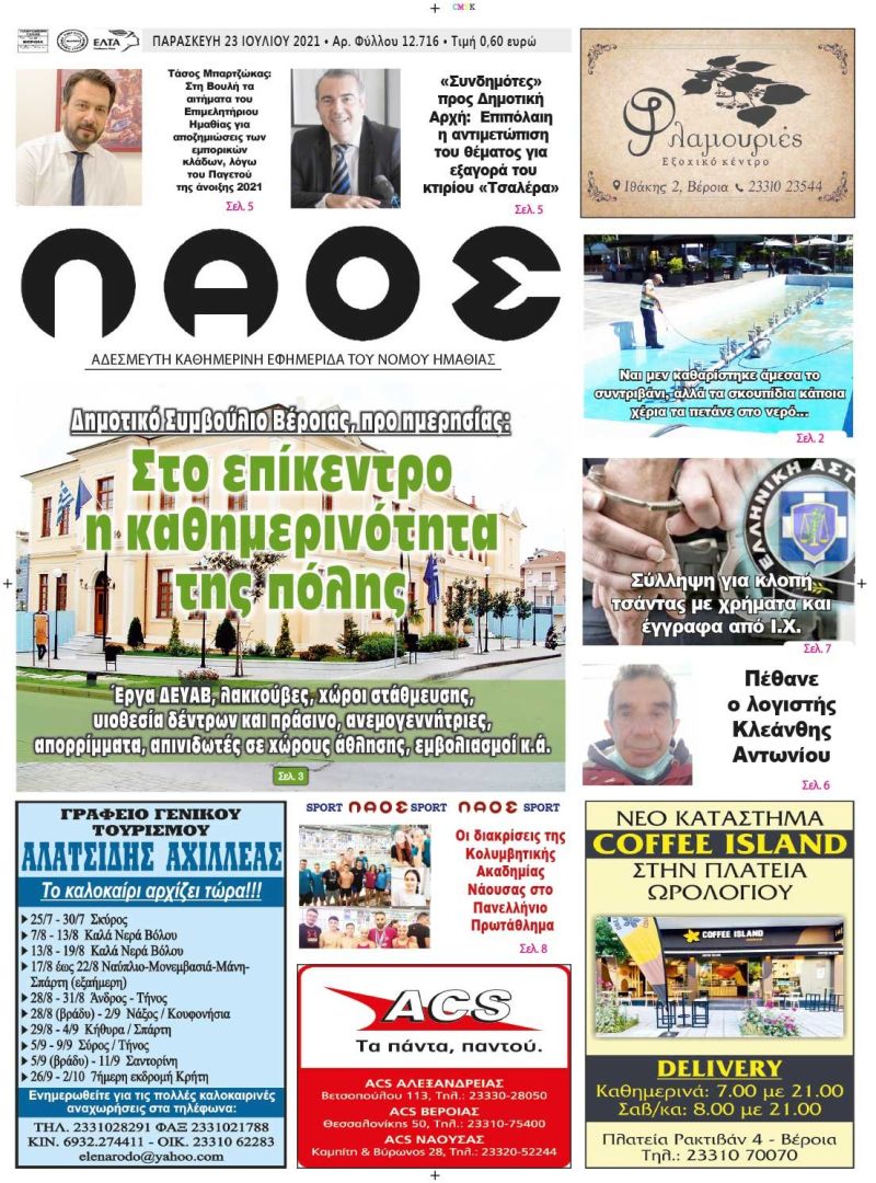 Πρωτοσέλιδο 23/7/2021