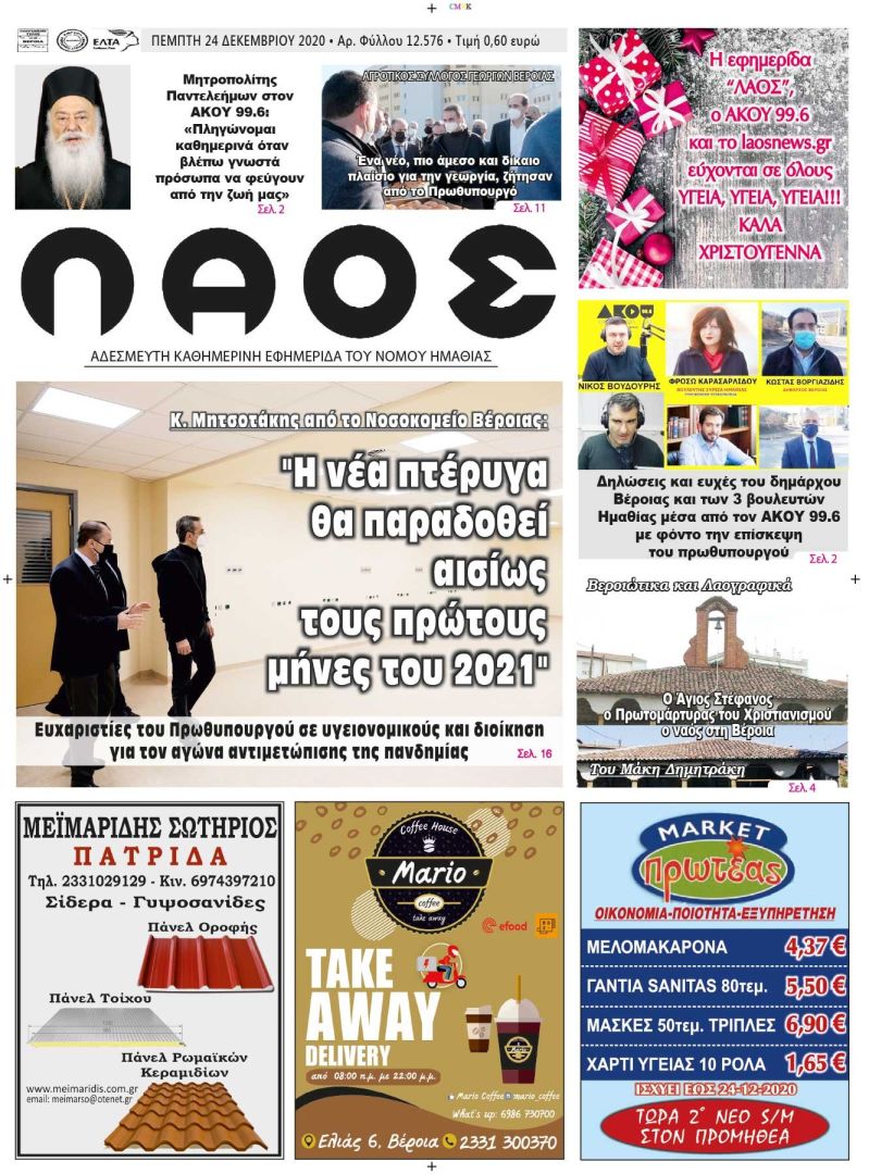 Πρωτοσέλιδο 24/12/2020